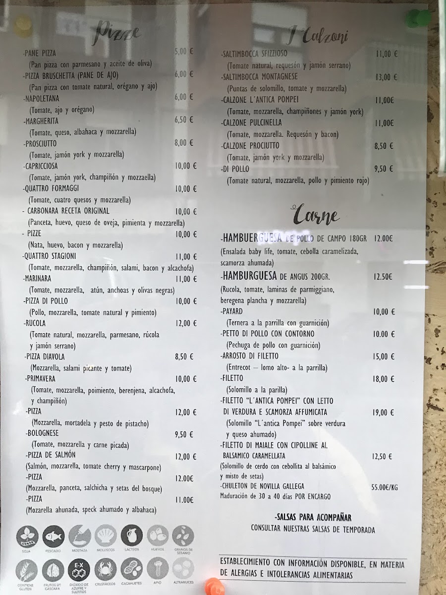 Restaurante Pizzería L Antica Pompei Menu